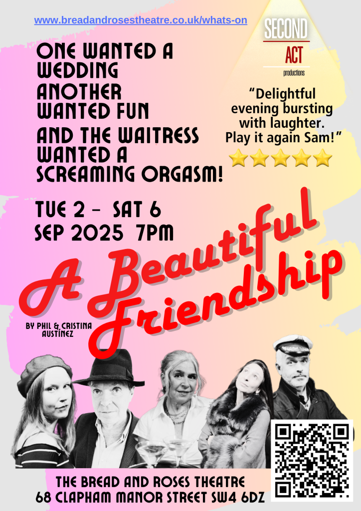 Second Act Productions is driven by a love for storytelling, creating unforgettable theatrical experiences that captivate and inspire. Rooted in passion and creativity, we aim to enrich the cultural fabric of South West London through exceptional drama.